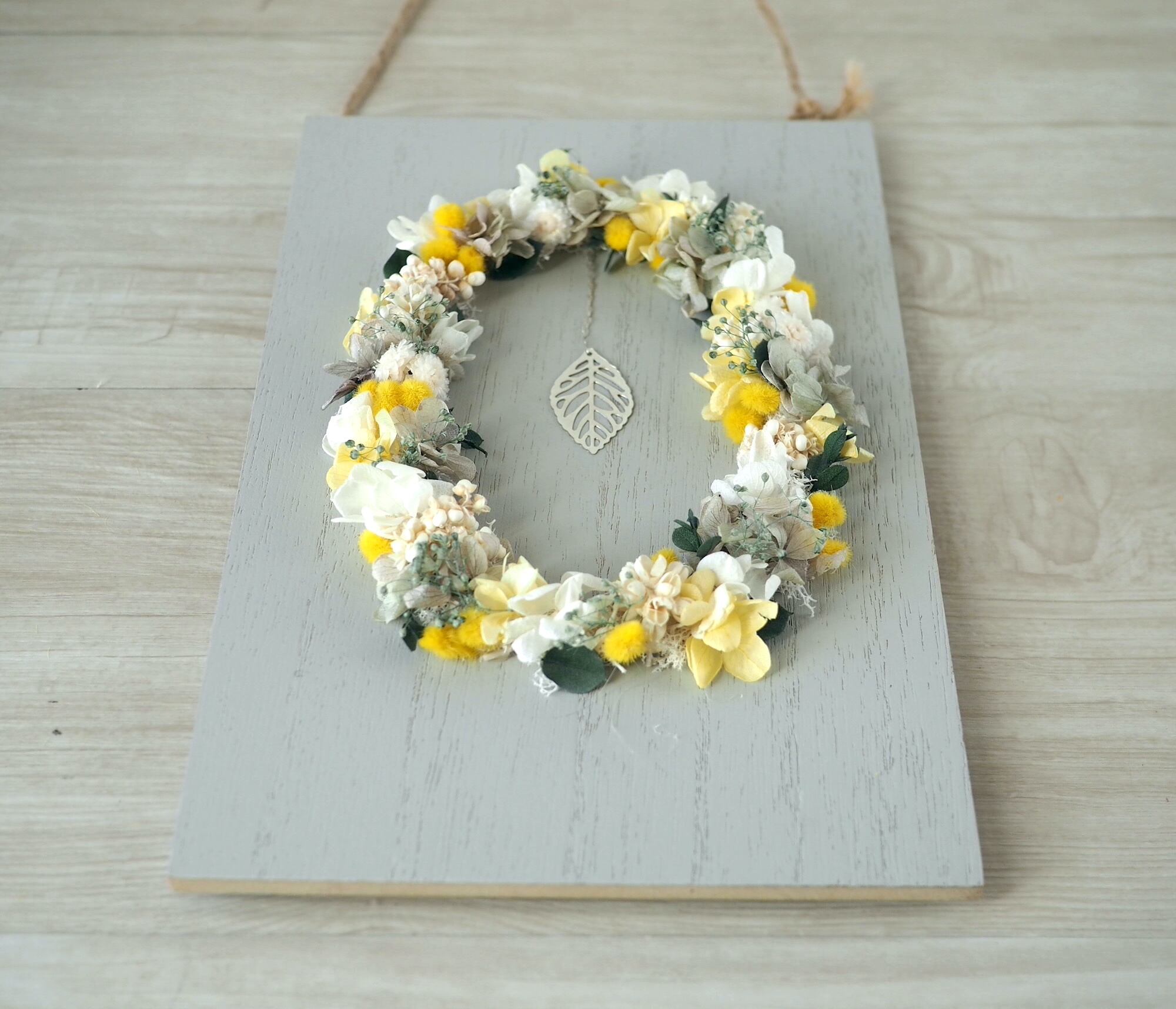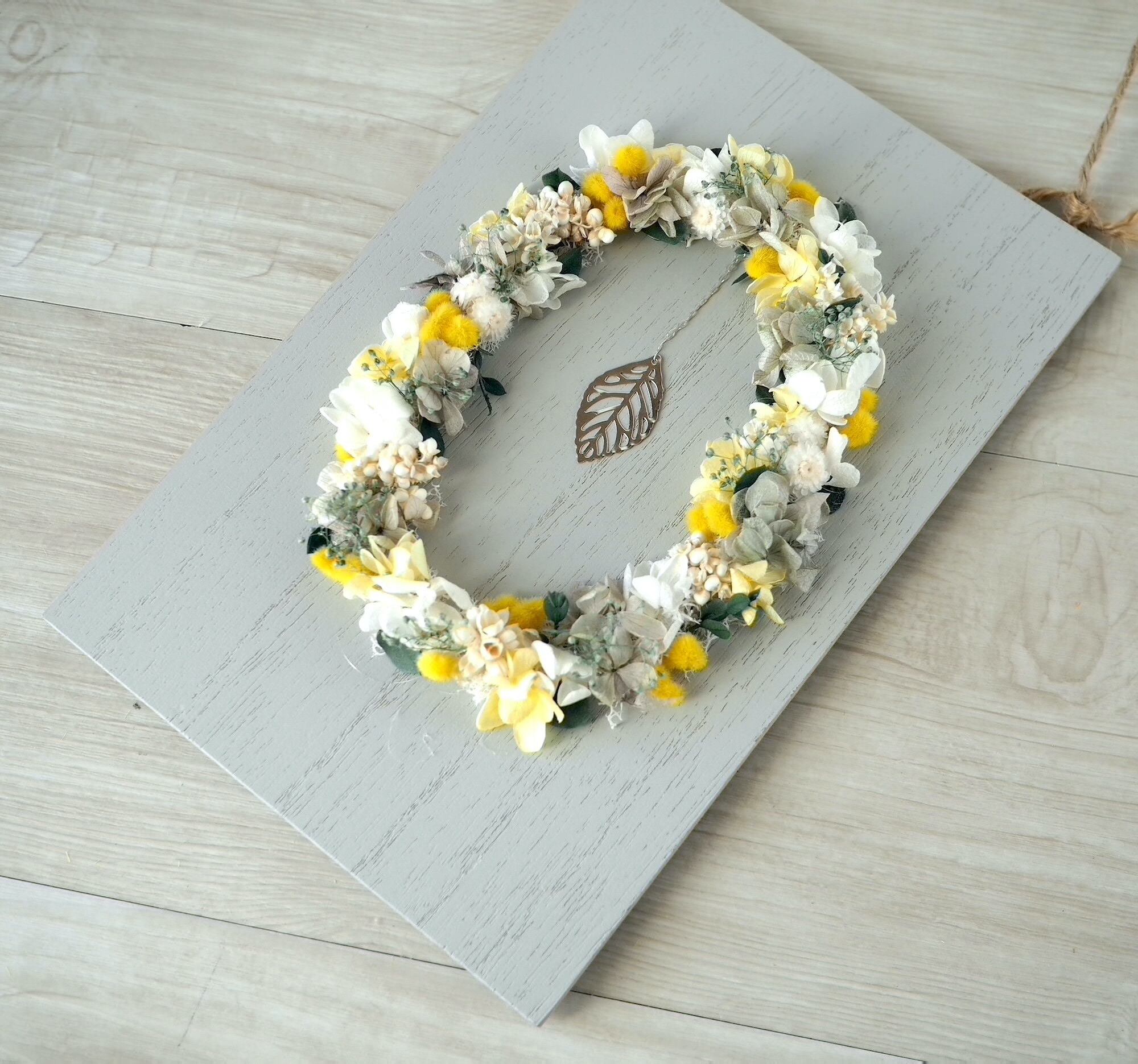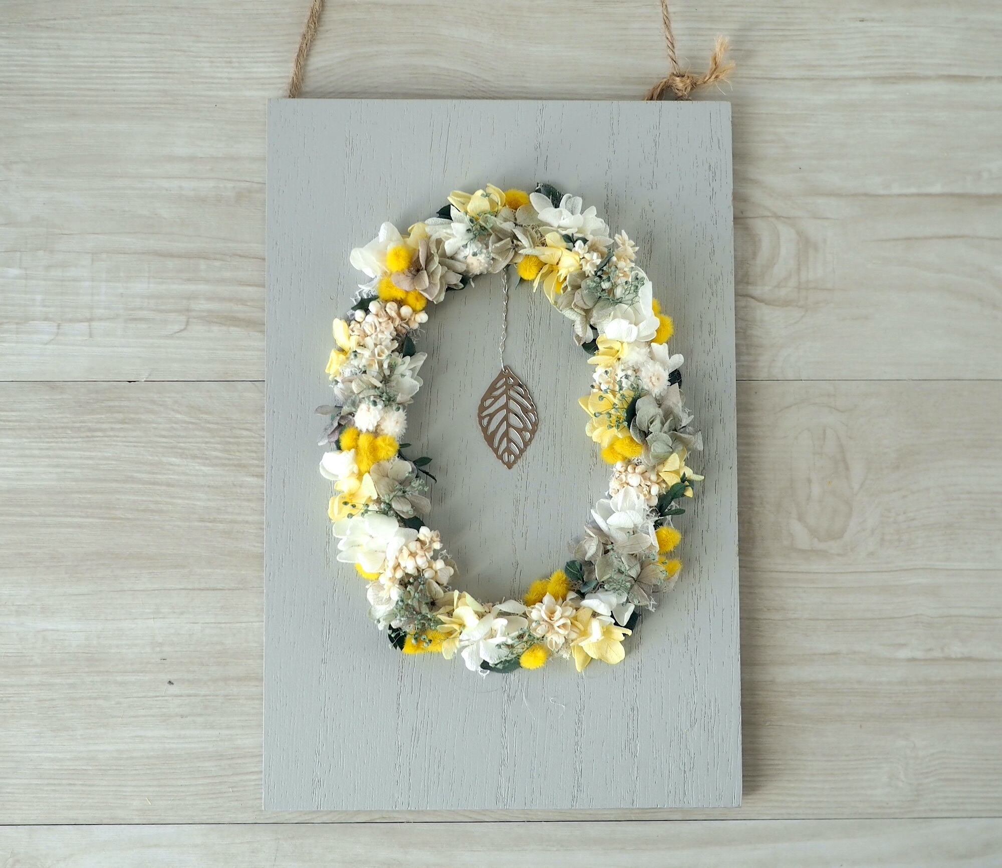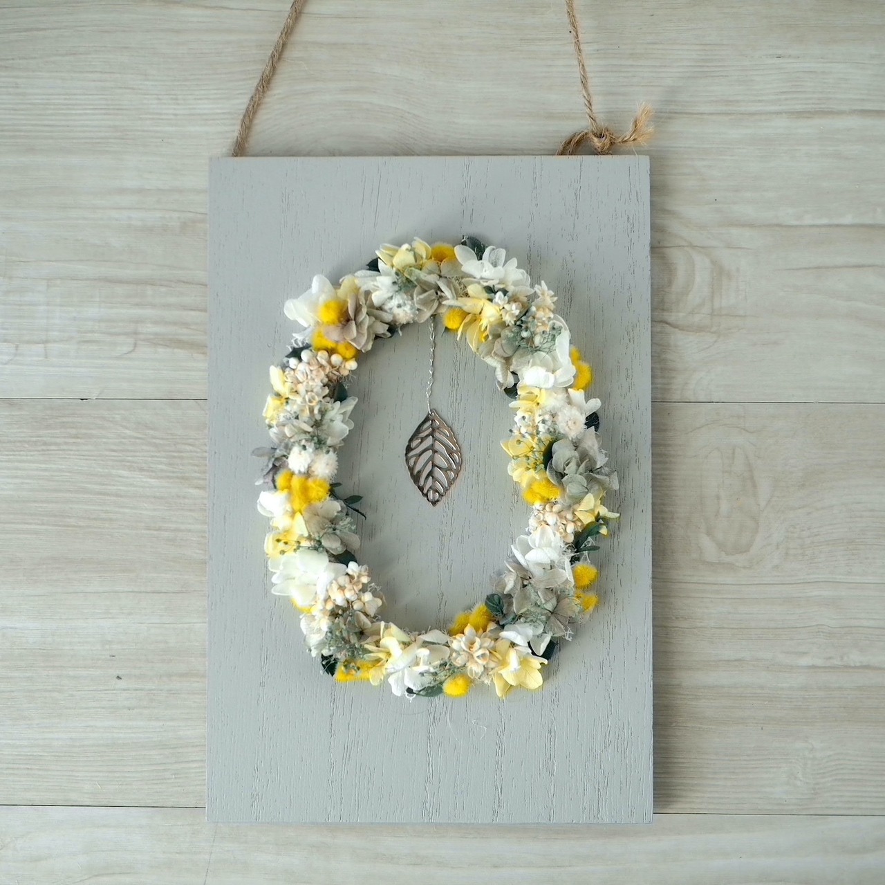 ミモザがポイント 壁掛けフラワーリース -gray-