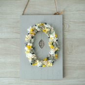 フレーム付きの壁に掛けて飾れるフラワーリース。